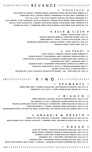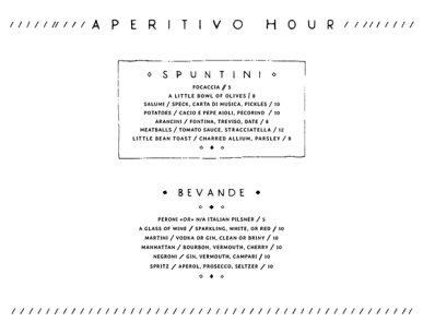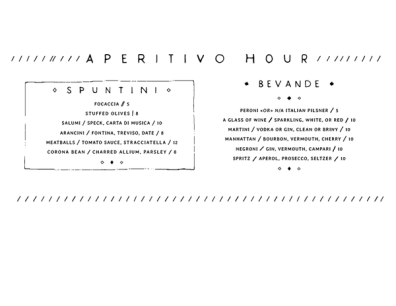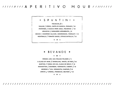 Aperitivo Menu Avaible Everyday between 5-6PM