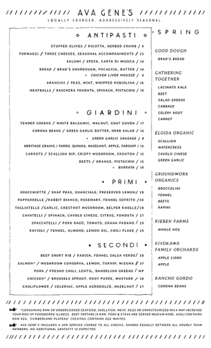 All menus are subject to change based on seasonality and availability.